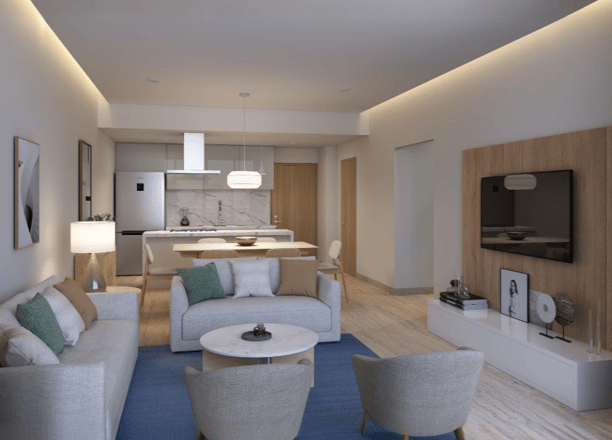 Además de las amplias terrazas envolventes, los espacios interiores de NovoMare® destacan por sus acabados de alta calidad, distribuciones bien pensadas y un estilo contemporáneo mexicano. Cada detalle ha sido cuidadosamente seleccionado para ofrecer durabilidad, elegancia, confort y adaptarse a tus preferencias personales de decoración.